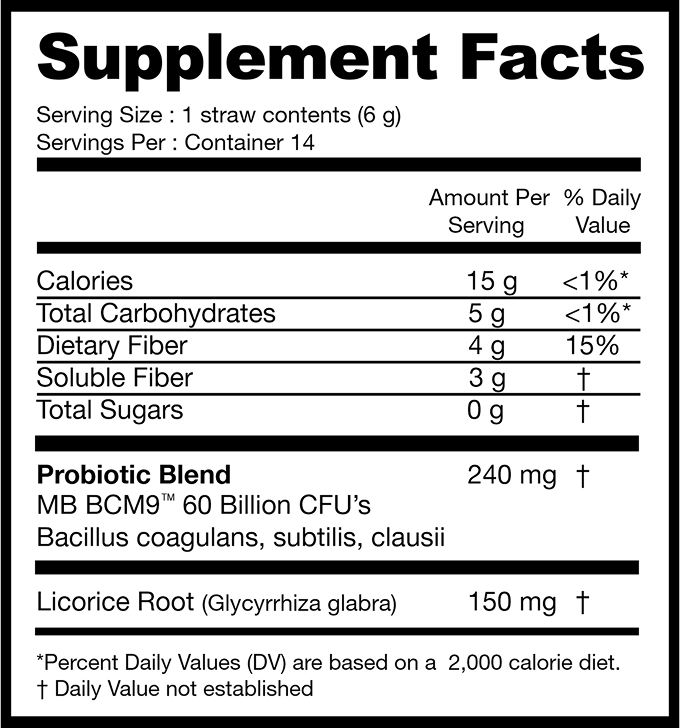 This isn't just any old prebiotic straw, it feeds your healthy gut bacteria and promotes regularity while reducing occasional bloating. Our prebiotic fiber is gentle on the digestive tract and works synergistically with probiotics to support a balanced microbiome.